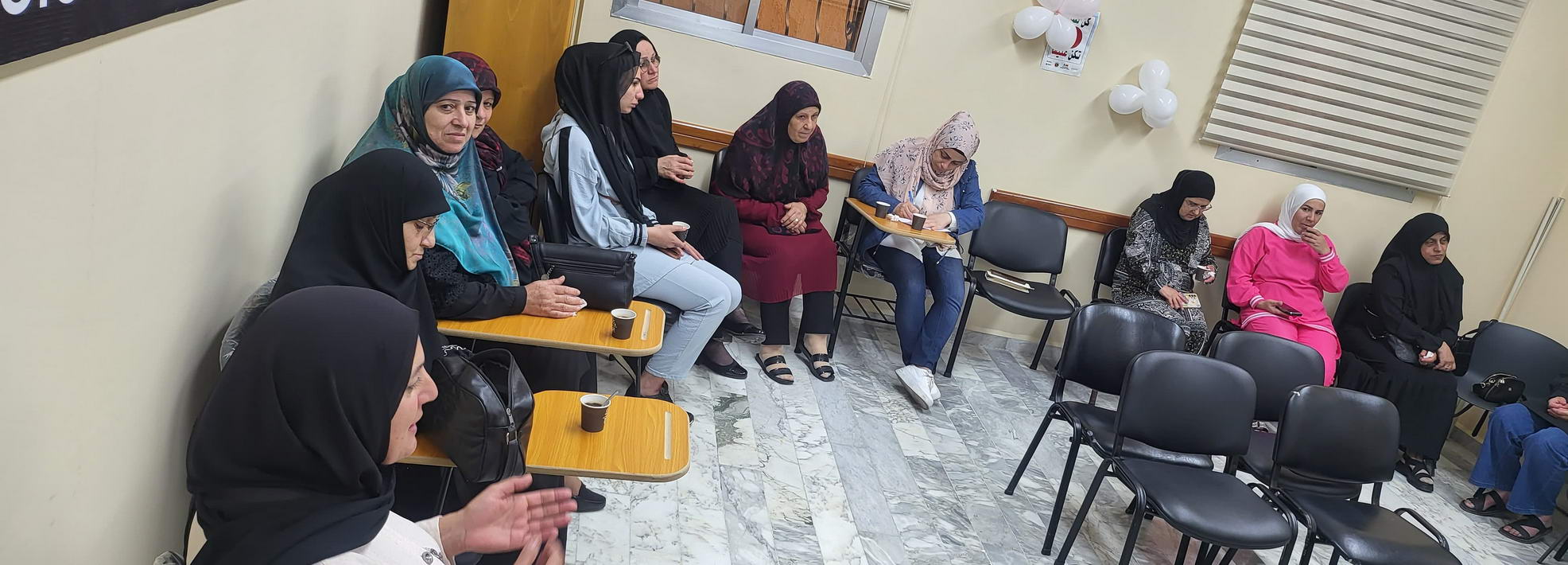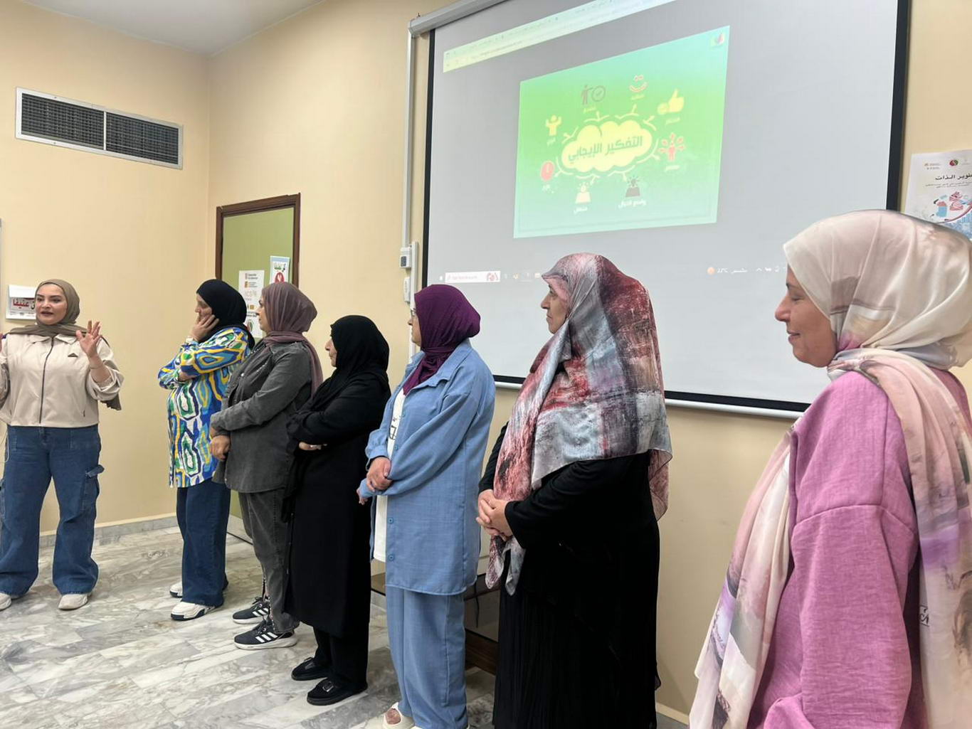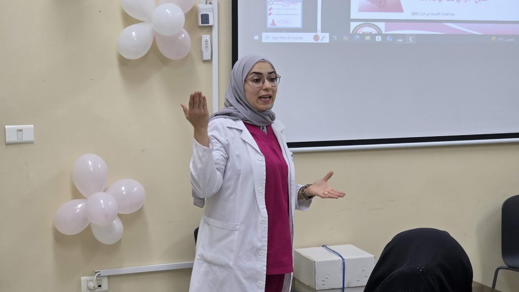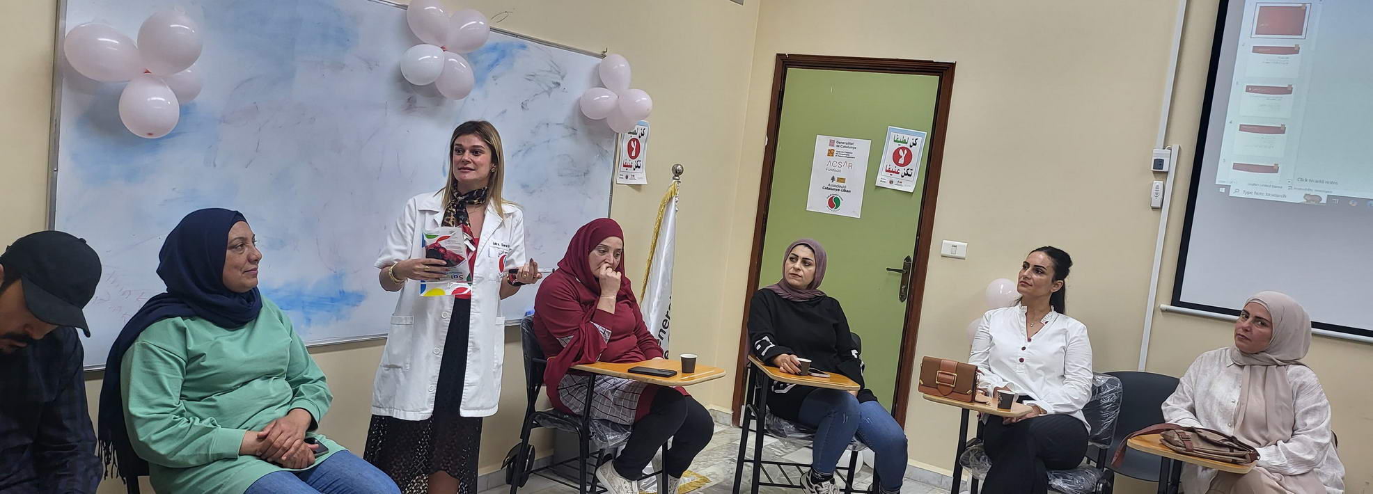 الورشة إستمرت خمسة أيام وتمحورت حول مواضيع الثقة بالنفس , الصحة الإنجابية, تطوير الذات والتفكير الإيجابي, وحاورت فيها مديرة التمريض في المستشفى السيدة سارة سلوم والقابلة القانونية في المستشفى السيدة آمنة غملوش والمرشدة الإجتماعية فرح حمود.