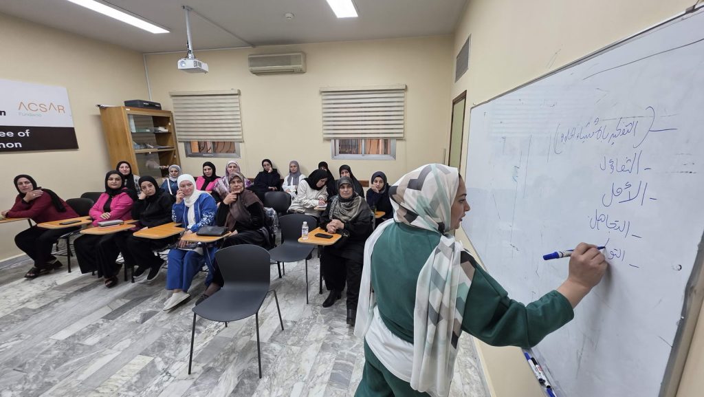 الورشات إستمرت خمسة أيام وتمحورت حول مواضيع الثقة بالنفس , الصحة الإنجابية, تطوير الذات والتفكير الإيجابي, وحاورت فيها مديرة التمريض في المستشفى السيدة سارة سلوم والقابلة القانونية في المستشفى السيدة آمنة غملوش والمرشدة الإجتماعية فرح حمود.